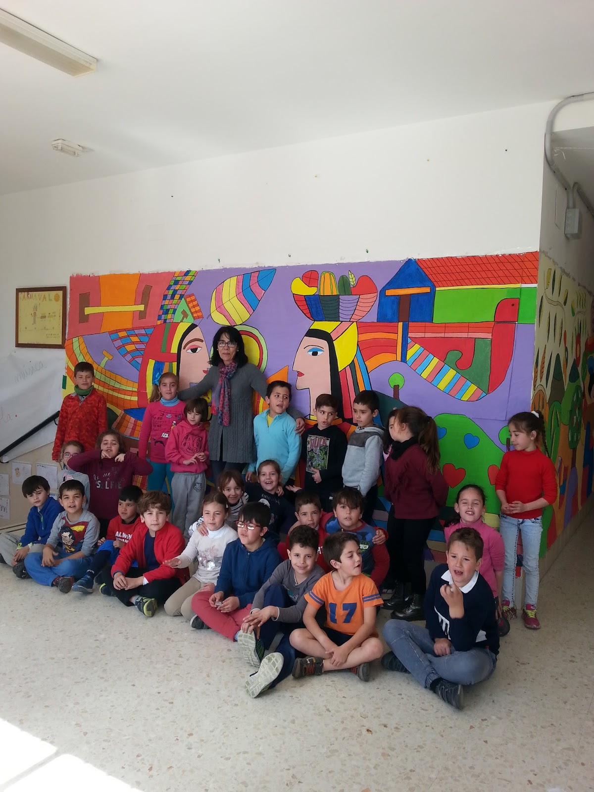 El Mural del Pasillo está terminado...los niños y niñas del 1er Ciclo de Primaria disfrutan del trabajo de familias, niñ@s y maestr#s con sus maestras Juani y Fina.