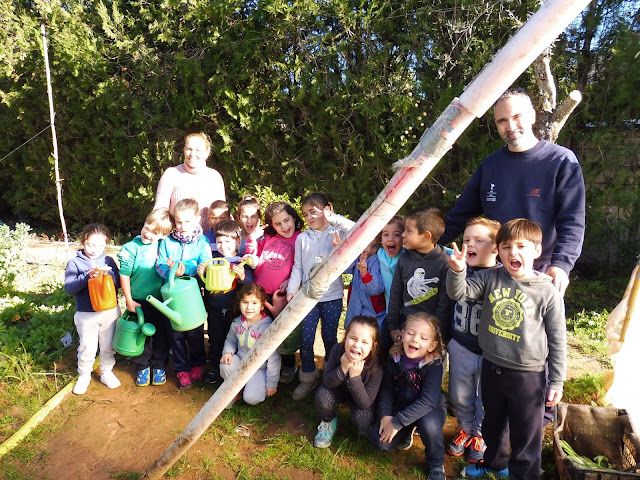 Hoy, nuestros niños y niñas de 5 y un curso de 4 años se iniciaron como hortelanos, plantaron en el invernadero,que es su parcela, lechugas, acelgas y patatas...plantaron, regaron, abonaron en equipos...disfrutaron muchísimo al igual que las madres y padres, maestros jubilados y maestras que fueron sus monitor@s.