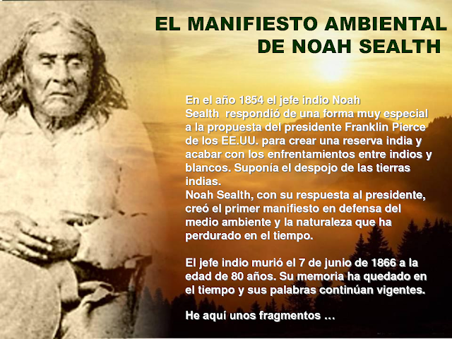 En el año 1854 el jefe indio Noah Sealth  respondió de una forma muy especial a la propuesta del presidente Franklin Pierce para crear una reserva india y acabar con los enfrentamientos entre indios y blancos. Suponía el despojo de las tierras indias.