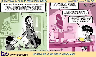 Con viñetas de Faro y C.DA COL, hoy, planteamos la relación de muchos Padres en relación al Servicio Público que debe ser la Enseñanza, su postura se acerca al Cliente que compra un "producto" exige, pero no se implica en un servicio público que tenemos que mejorar entre Profesores, Alumnos y Padres. Evidentemente no son todos los padres ni mucho menos pero los trabajadores de la Enseñanza notamos una lejanía de un gran sector de los Padres y la poca implicación por mejorar la Escuela y el Instituto. Otro día le tocará las viñetas a los alumnos y a los profesores.