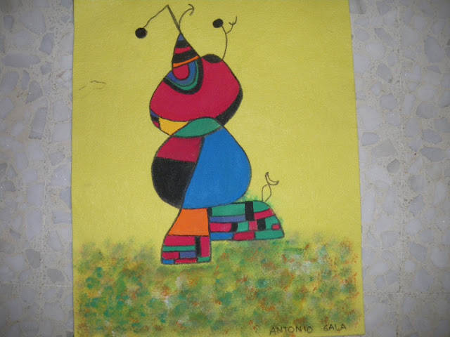 ALUMNADO, MADRES Y PROFESORES del 1er Ciclo de Primaria del Colegio ANTONIO GALA, están realizando "BAYETAS SOLIDARIAS" teniendo a Miró como referente (al que han homenajeado este año)