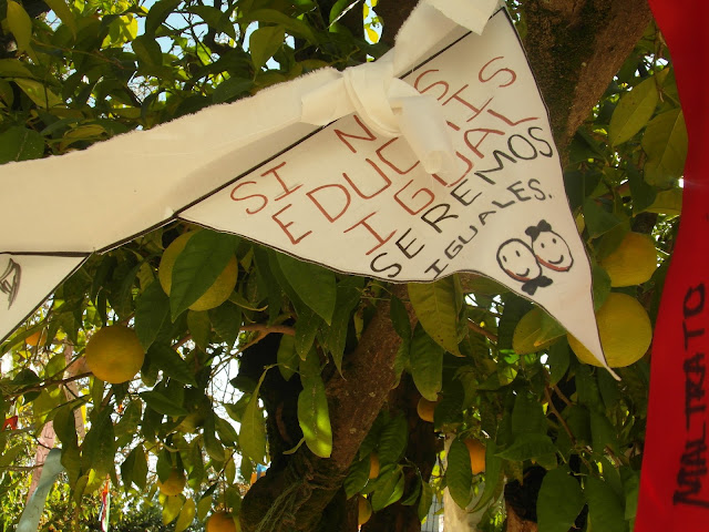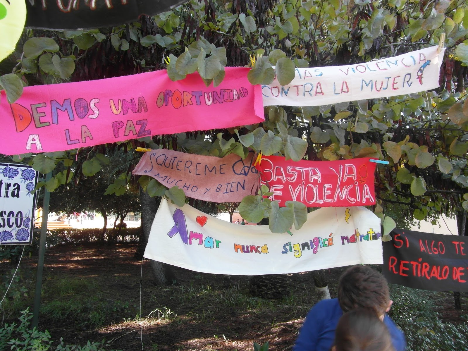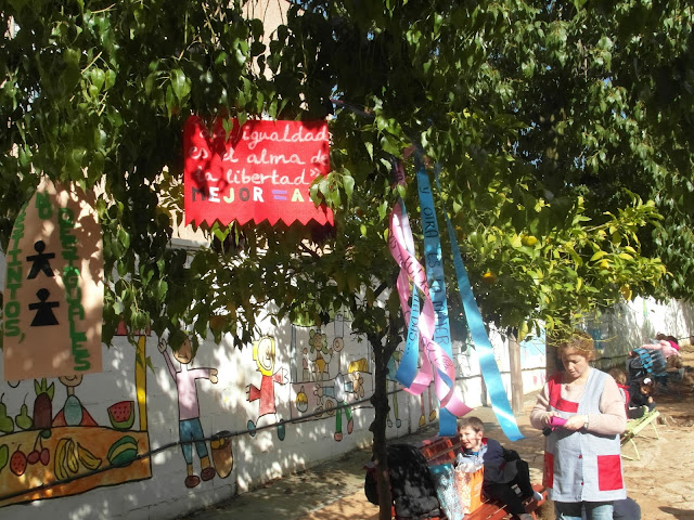 Nuestro Colegio ha llenado parte de sus árboles de trabajos y mensajes de todos los cursos de Infantil a Formación Profesional Básica además de la participación con trabajos del  AMPA, la Escuela de Familias y las maestras y maestros sobre la necesidad de hacer crecer nuestros valores, especialmente ls mensajes han ido dirigido a trabajar y comprometernos en acabar con la Violencia de Género.