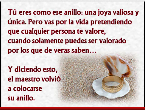 –dijo el maestro después de escucharlo—. Tú eres como este anillo: una