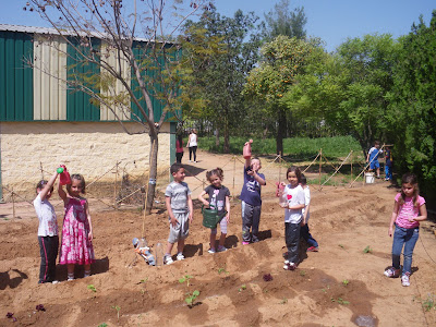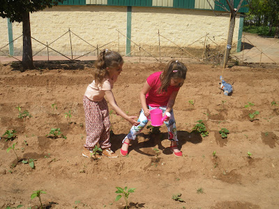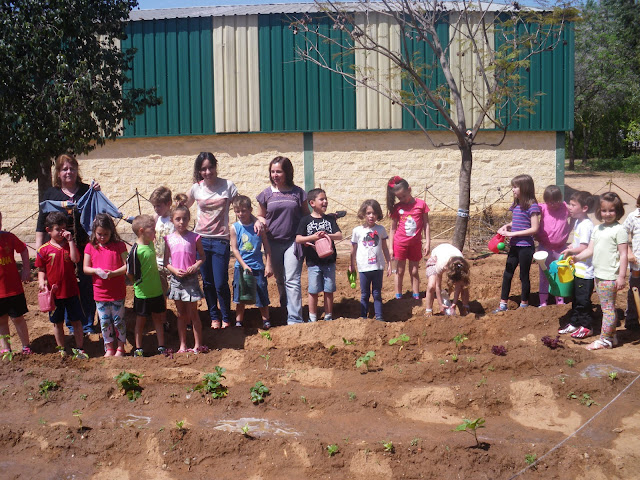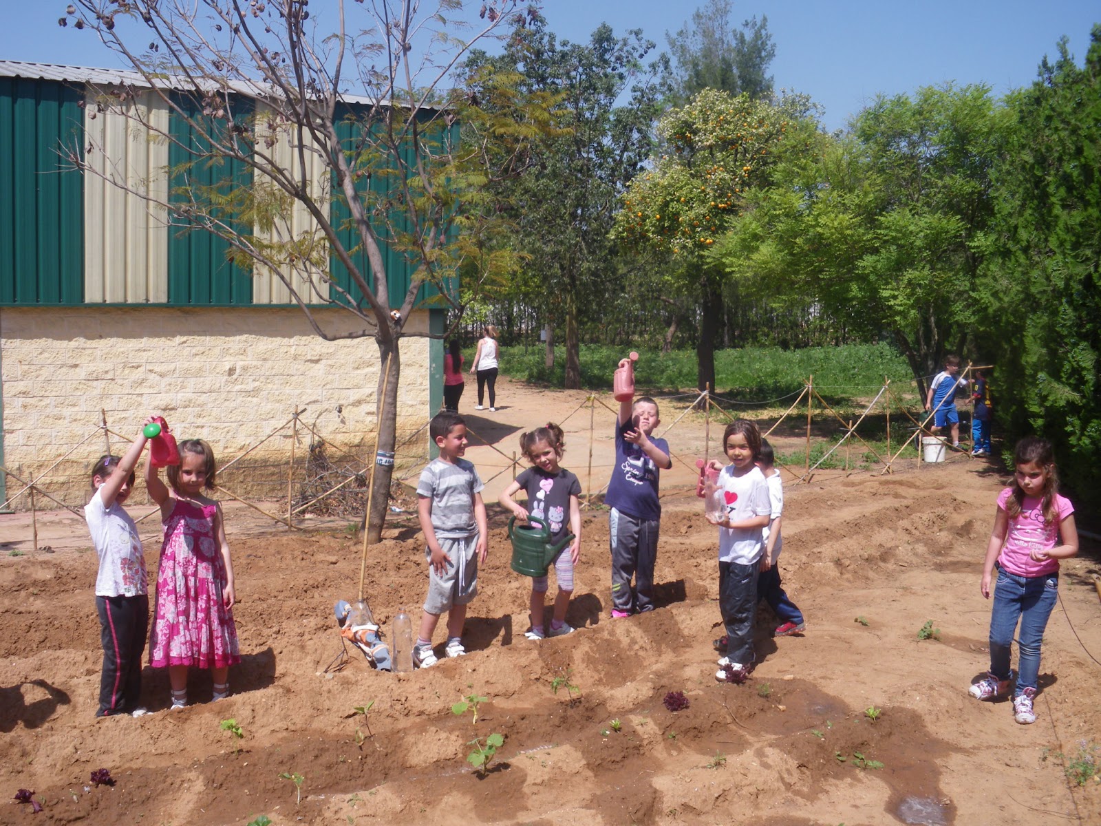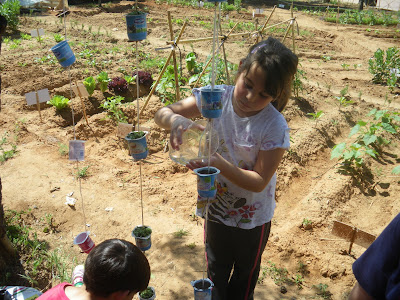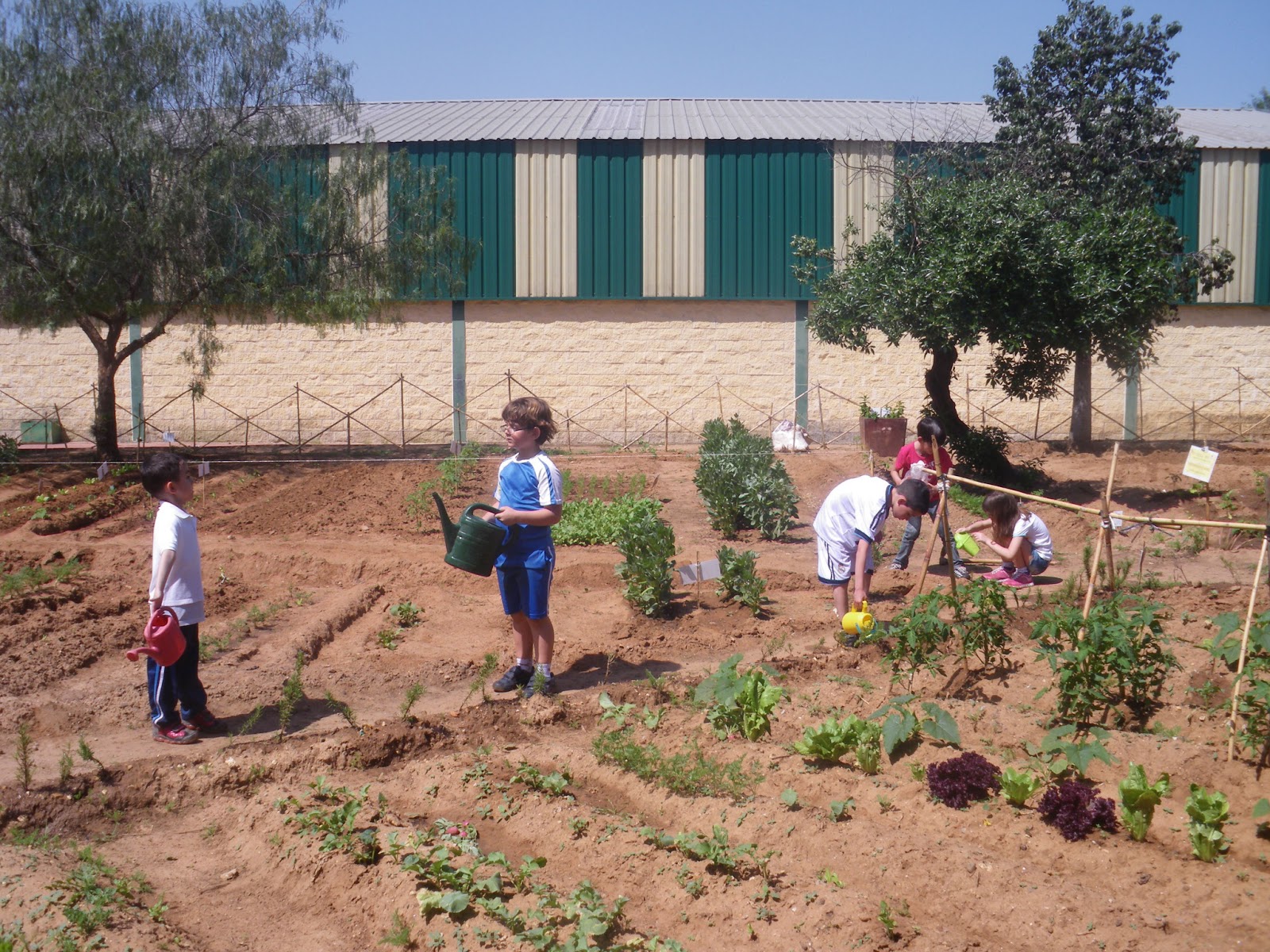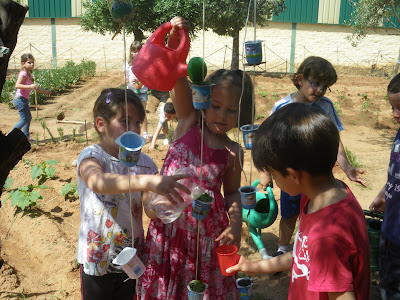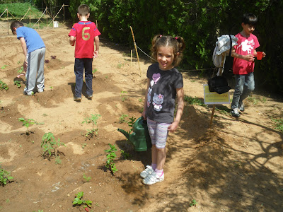 En este caso l@s alumn@s de 1er Ciclo de Primaria se ocupan de regarlo...empieza la calor y las tomateras necesitan agua...